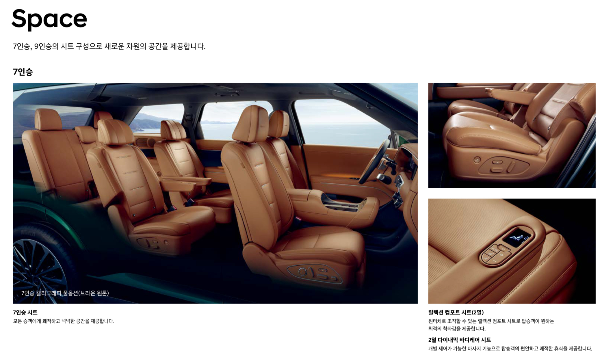 ‘디 올 뉴 팰리세이드’는 7인승과 9인승 두 가지 시트 구성을 제공합니다. 7인승 모델은 2열에 독립식 캡틴 시트를 적용하여 승객의 편의성과 안락함을 강조하였으며, 9인승 모델은 2열과 3열에 벤치 시트를 배치하여 더 많은 인원을 수용할 수 있도록 설계되었습니다. 용도와 필요에 따라 적합한 시트 구성을 선택하실 수 있습니다.